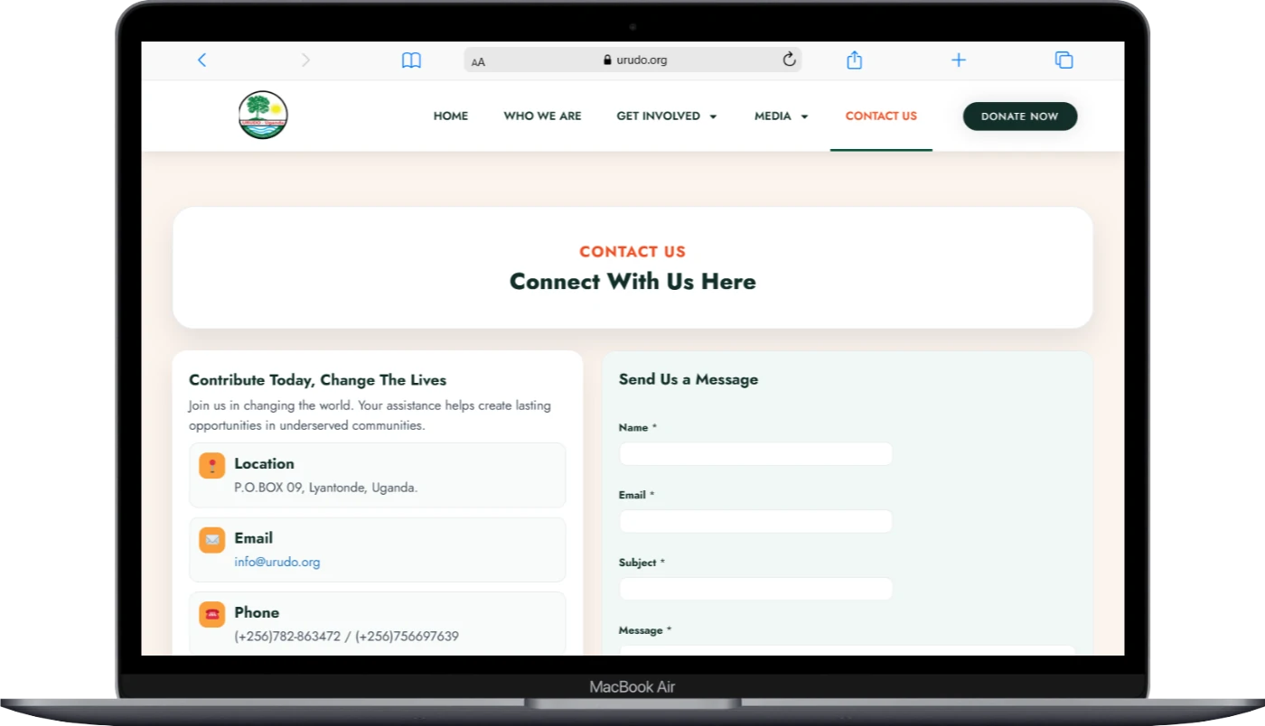 This NGO website was created for URUDO to give the organization a structured and transparent way to present its work to partners, donors, and communities. The NGO Website introduces the mission, programs, and long-term goals in a format that is easy to read and easy to access without physical meetings or printed reports. Instead of relying on word-of-mouth explanations, the team can now direct people to one source of verified information.