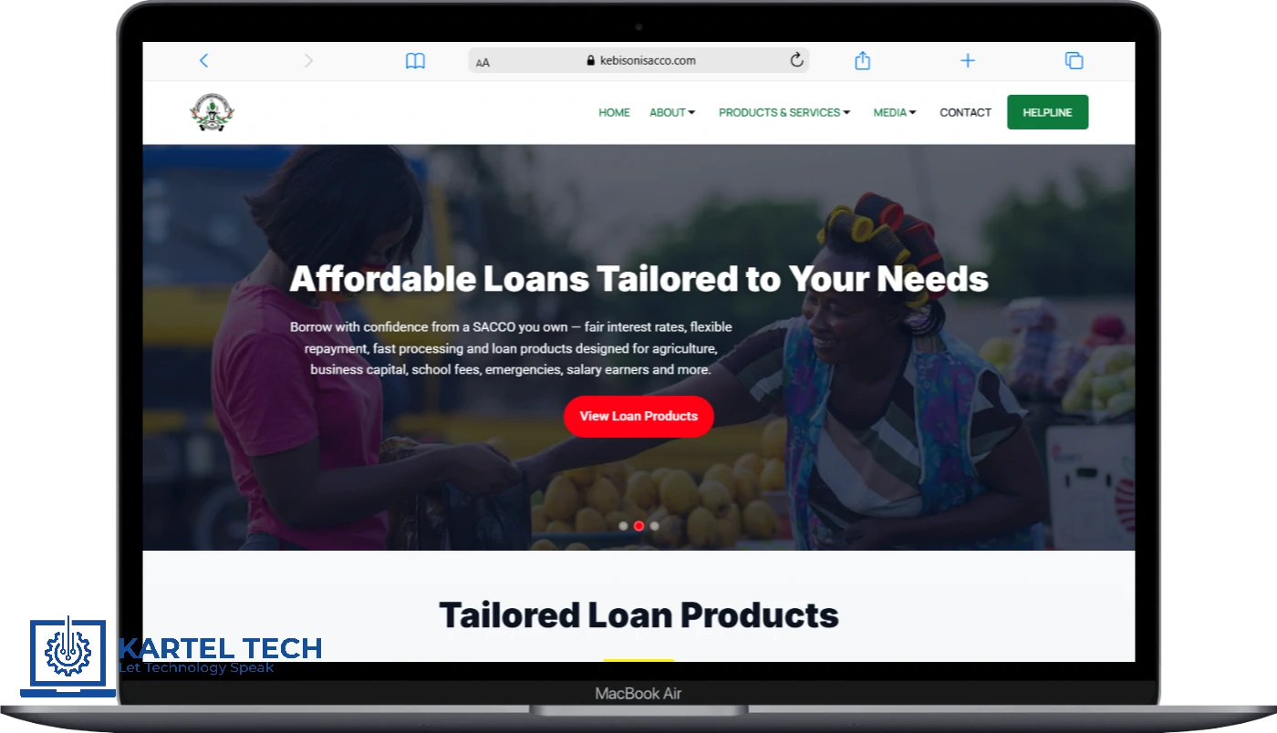 This SACCO Website was built for Kebisoni SACCO to help the cooperative present its services, values, and membership information in a structured and trustworthy format. The site replaces offline explanations with a permanent digital reference. Anyone interested in loans, savings, or joining the cooperative can now understand the process without walking to the office.